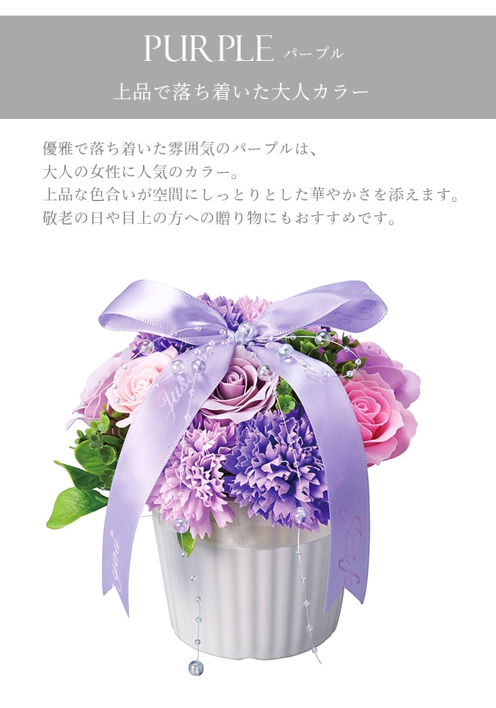 上品な陶器のポットに、美しく咲き誇るソープフラワーを