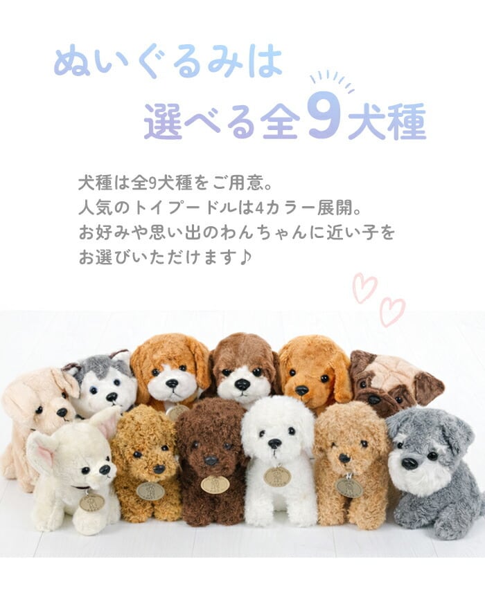 犬 ぬいぐるみ 人形 選べる9犬種 プレゼント 子供 クリスマス 誕生日 母の日 ホワイトデー かわいい お悔み ペット供養 ビーグル パグ チワワ トイプードル ミニチュアシュナウザー ゴールデンレトリバー ハスキー ラブラドール セントバーナード 小さい TOYDOG