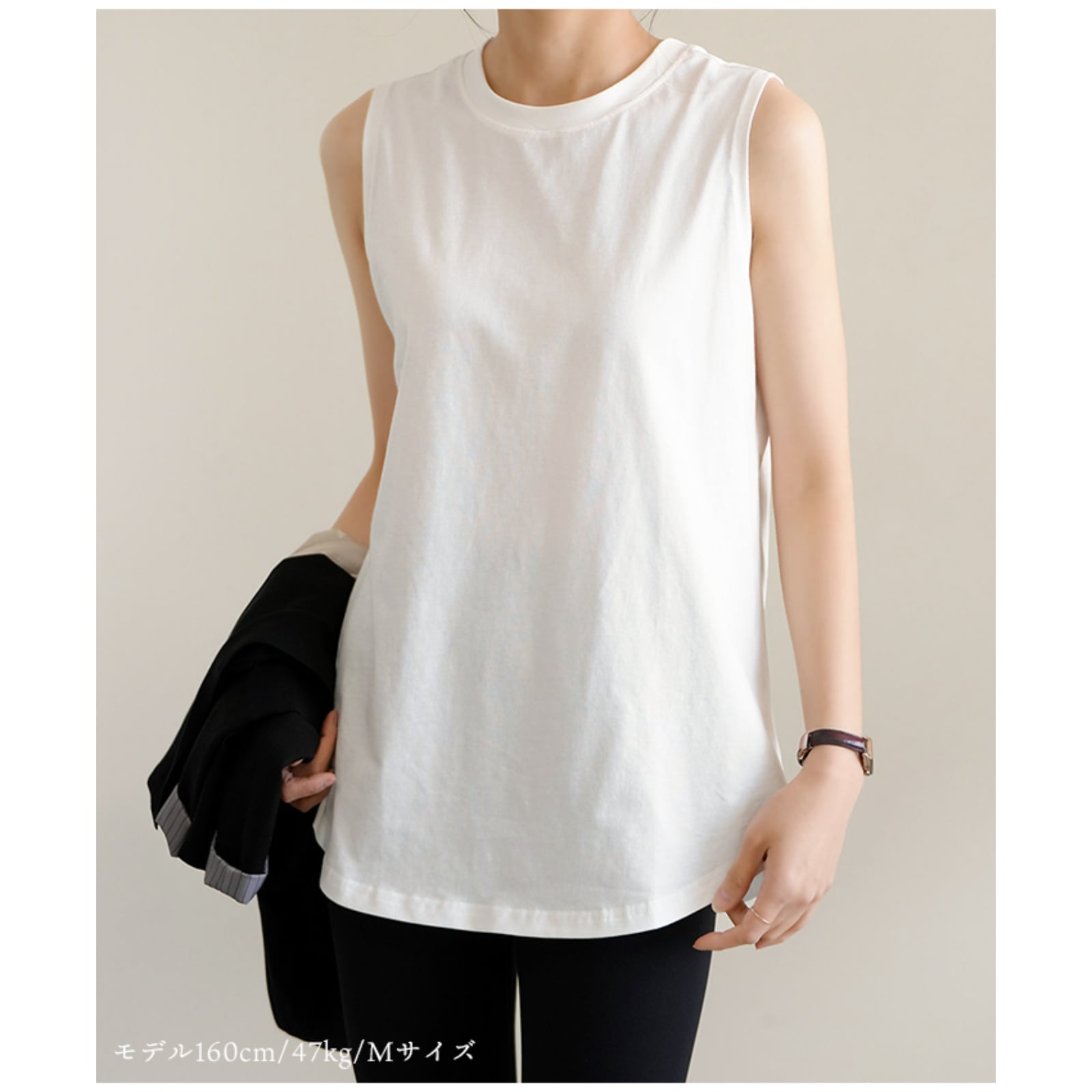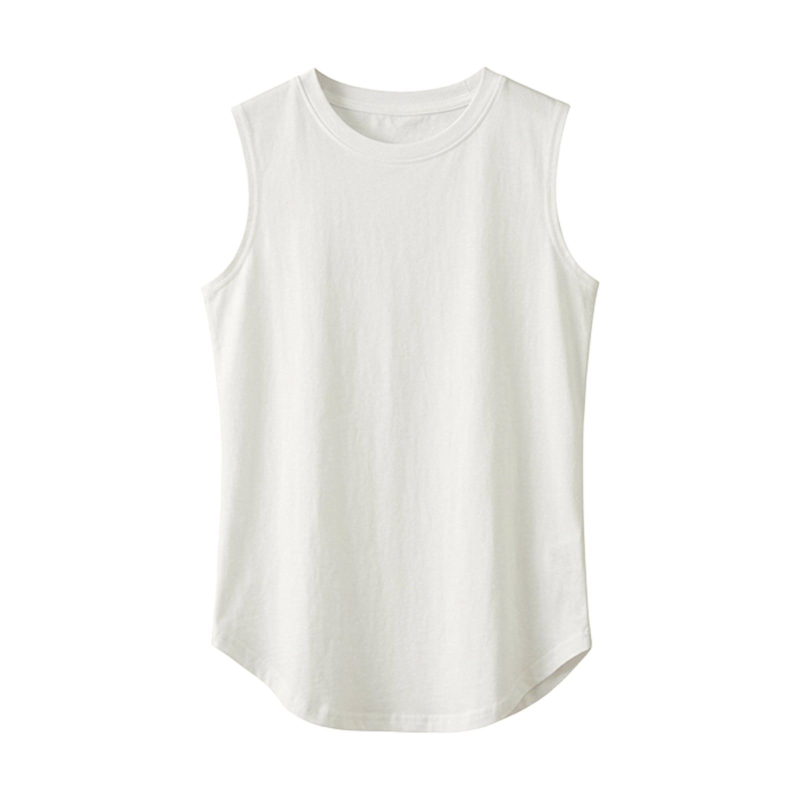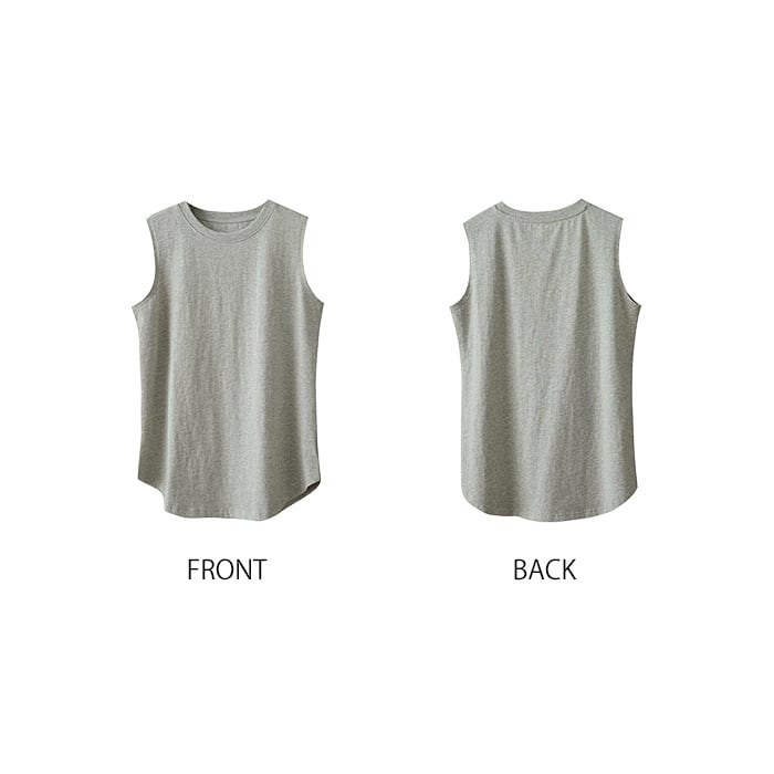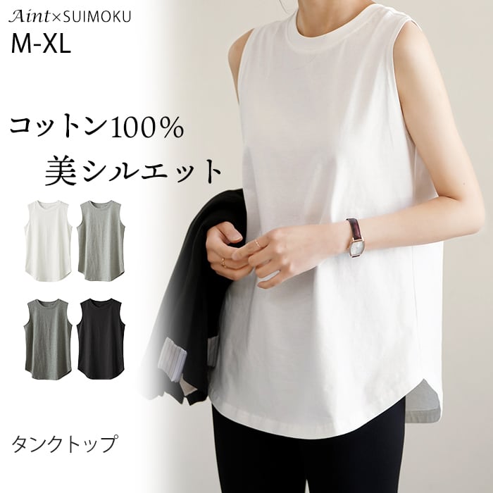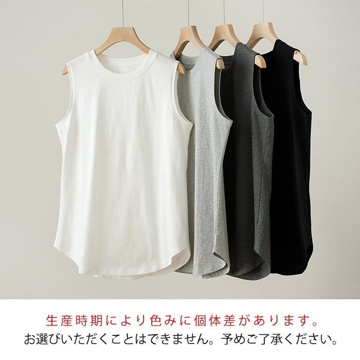 綿100% タンクトップ レイヤード インナー レディース 重ね着 レイヤードインナー ノースリーブ 無地 長め 裾ラウンド ラウンドヘム ロング丈 トップス 体型カバー お尻隠し ゆったり 着痩せ 春 夏 ホワイト ブラック グレー J-25043 スイモク【水沐良品】