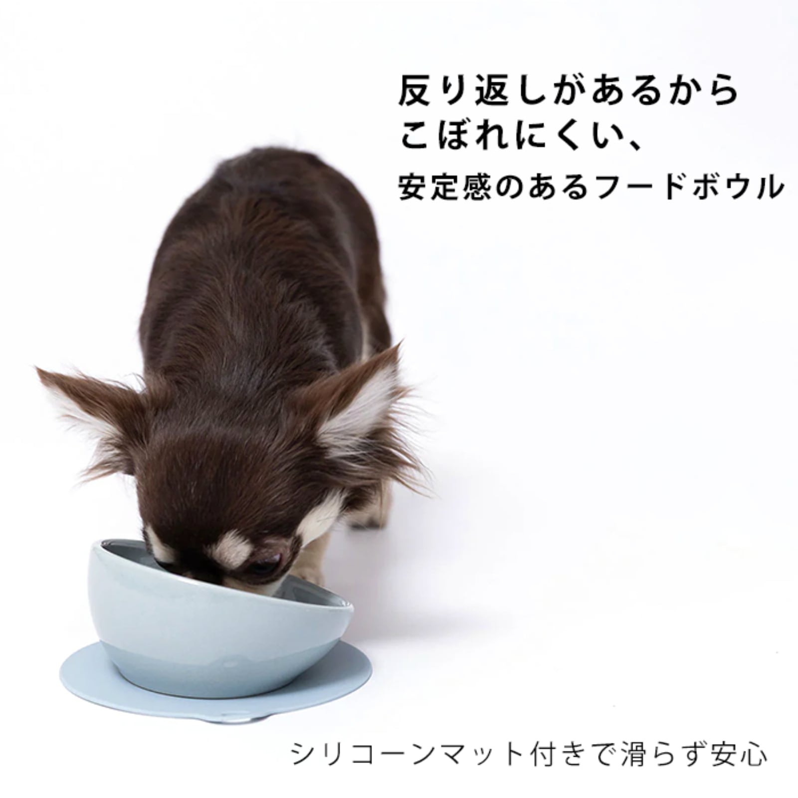 反り返しがあるからこぼれにくい、安定感のあるフードボウル。