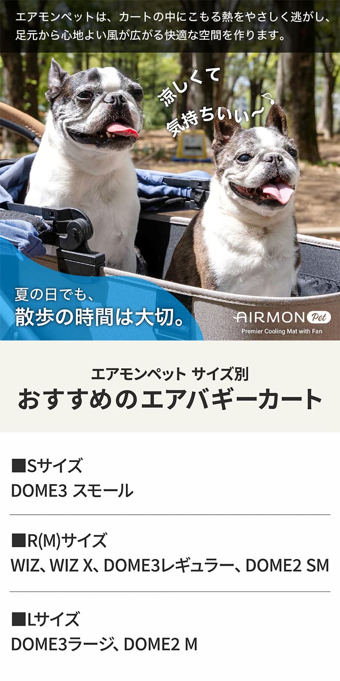ファン付き クールマット エアモンペット ペットカート用 マット Lサイズ 接触冷感 送風 メッシュ ひんやり 風量4段階調整 PU生地 生活防水 洗える 軽量 車 ケージ お部屋 旅行 AIRBUGGY エアバギー wizX DOME3 DOME2 WIZX 風の出るクールマット AB-AIRMON