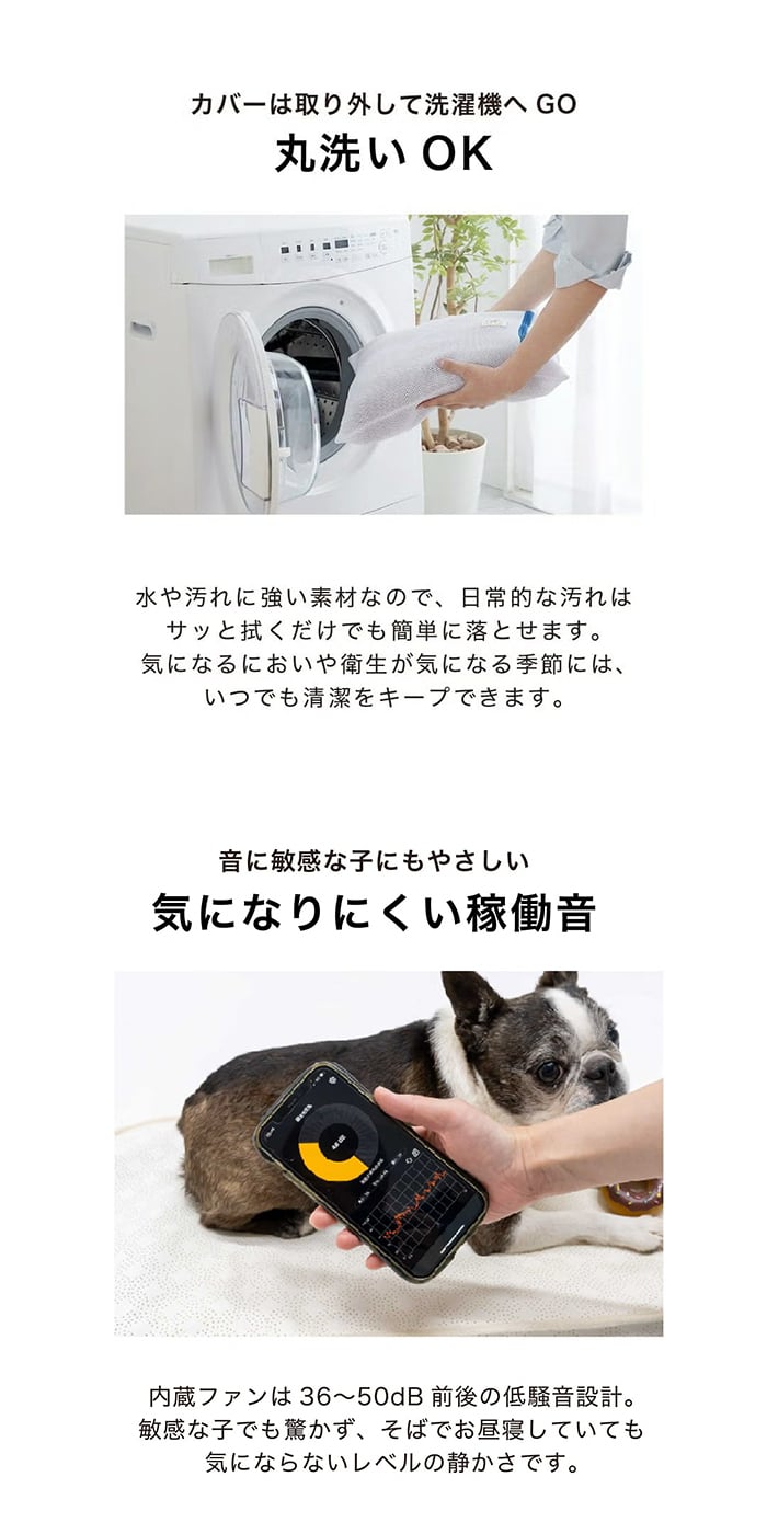 気温やペットの状態に合わせて風量を調節。音や振動に敏感な子にも安心して使えます。