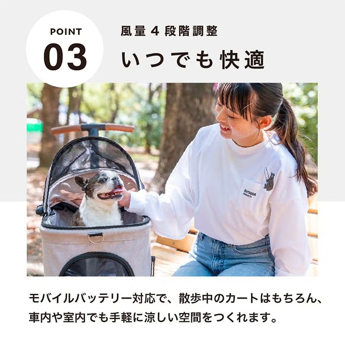ペットカートやキャリーケース、車内やお部屋でも、やさしい風とひんやり感で大切な家族の快適な夏をサポートします。