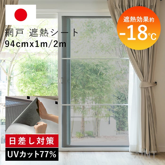 【賃貸でも安心!貼るだけ跡なし】日本製 遮熱シート 94cm×1m 1枚 網戸遮熱 遮熱効果-18℃ 網戸 窓日よけ 目隠し UVカット77% 遮光シート カット可能 遮熱フィルム 紫外線対策 窓フィルム 節電・省エネ効果 暑さ対策 夏 日差し 取り付け簡単 MWG-SDWS