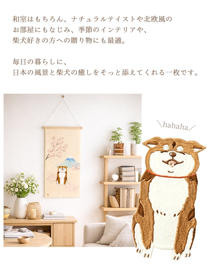 柴犬と桜・富士山をモチーフにした刺繍タペストリー♪柴犬好きの方へのプレゼントにも★