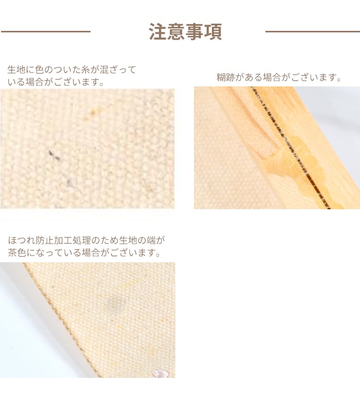 丁寧に検品しておりますが海外製品のため、日本製品に比べて生地キズや汚れ、糸のほつれなど裁縫の甘い部分があります。ご了承ください。