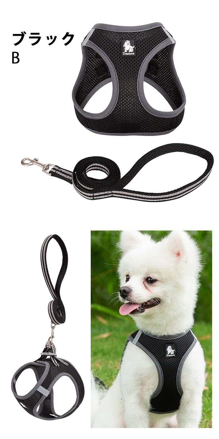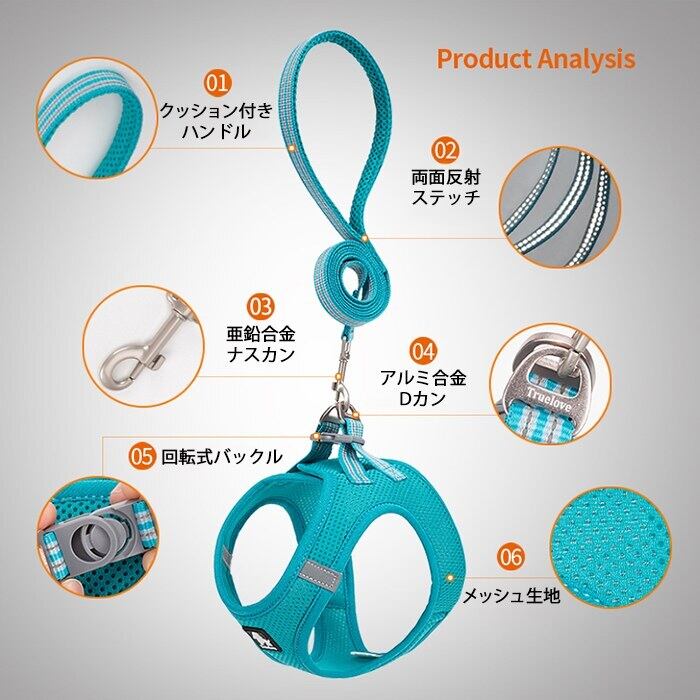 Truelove ハーネス リード セット 犬 猫 メッシュ 軽い 通気性 パピー 小型犬 中型犬 兎 うさぎ ベスト型 抜けにくい 軽量 胴輪 負担軽減 3XS 2XS XS S M L 超小型犬 子犬 犬用 散歩 フィット おでかけ TLH2911