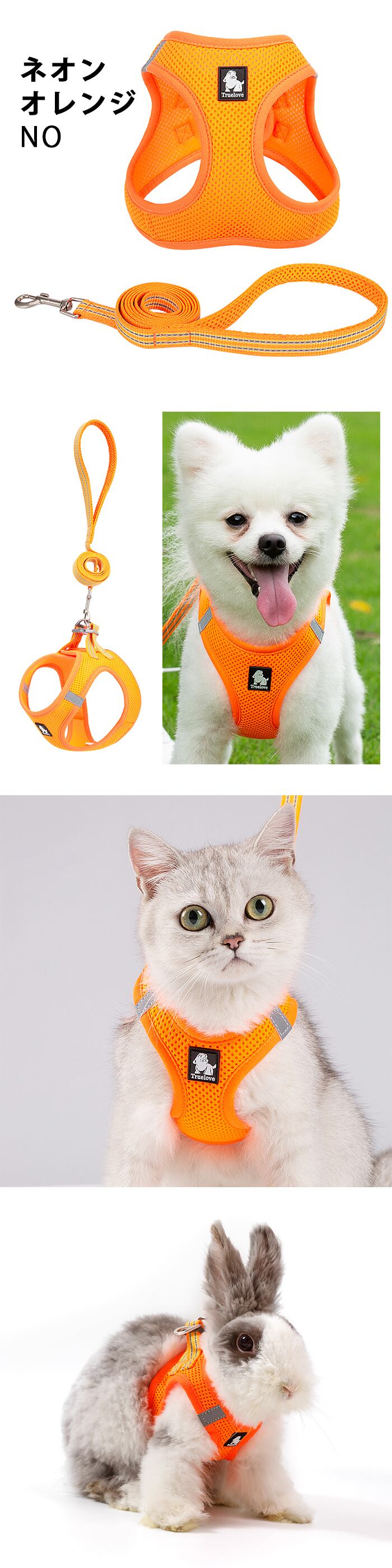 犬 ハーネス リード セット 猫 ハーネス うさぎ ハーネス 小型犬 中型犬 メッシュ 通気性 軽量 クッション 散歩 ペット用品 おしゃれ 反射 夜間安全 サイズ調整 脱着簡単 ソフト 痛くない 丈夫