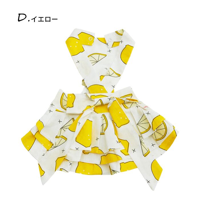 KM954SK新作 ワンピース 花柄 レモン 犬服 春 夏 フレンチブルドッグ トイプードル 服 中型犬 小型犬 フレブル イエロー グリーン レッド オレンジ 花 女の子 スカート フリル 犬 服 ドッグウェア ペット服