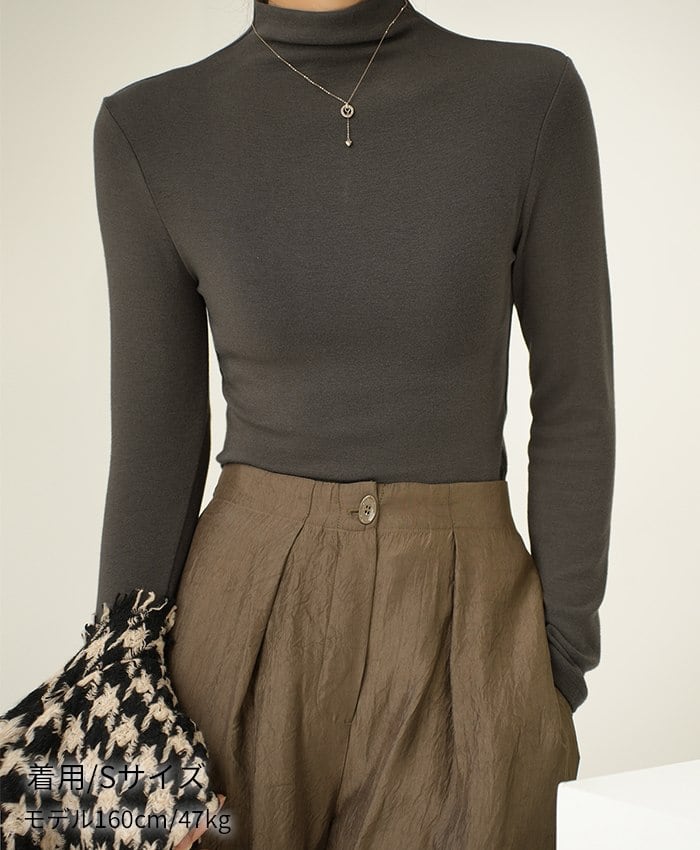 スイモク 保温 極暖 カットソー ハイネック レディース トップス Tシャツ 長袖 春 秋 冬 インナー 伸縮性 蓄熱 通勤服 仕事服 オフィスカジュアル 無地 タートルネック 薄手 フィット カジュアル シンプル 重ね スリム OL 5623363【水沐良品】