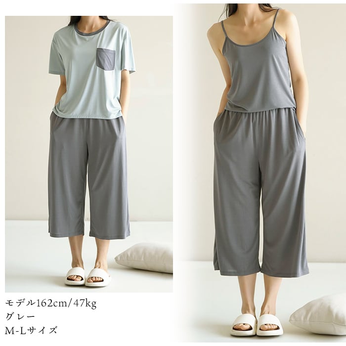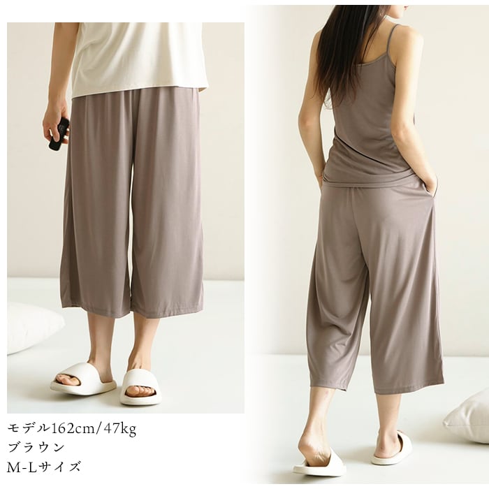 ルームパンツ 7分丈 オシャレ ゆったり ポケット付き 春 夏 無地 きれいめ カジュアル シンプル 快適 パジャマ ルームウェア レディース 長ズボン ナイトウェア ズボン ボトムス 薄手 軽い 5682164 スイモク【水沐良品】【ルームパンツ 単品】