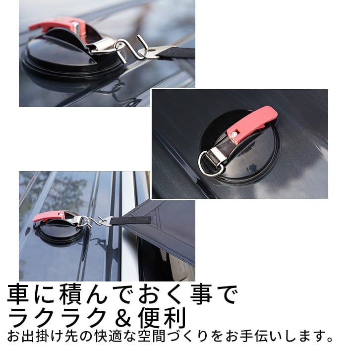 強力 吸盤フック タープフック 4個セット カーサイドタープ タープテント 屋外 サンシェード固定 吸盤 フック 高耐久 吸盤固定 フック付き 強力吸盤 キャンプ用品 耐久性 軽量 カーサイドタープ ルーフパネル 車 カー タープフック 釣り テント用 使用タープ連結用 G280-B-4車につけて簡単、タープ設置♪