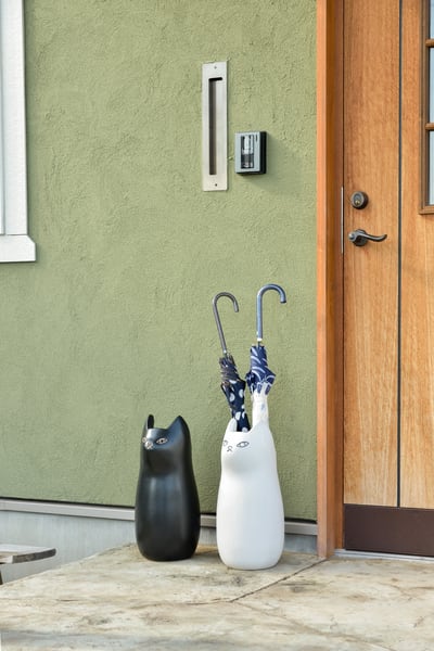 【メーカー直送、2営業日以内に発送】東谷 猫 傘たて 約W19×D19×H45 ブラック/ブラウン/ホワイト 陶器 内側に濡れ防止コーティング CLY-12