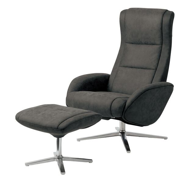 【メーカー直送、2営業日以内に発送】東谷 ラウンジチェア ソファ:W76×D84〜121×H106〜72×SH45 オットマン:W51×D46×H40 キャメル/ブラック スチール(クロームメッキ) ポリエステル RC-111