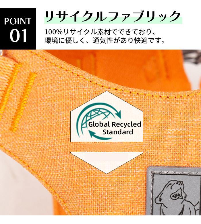 100%リサイクル素材でできており、環境に優しいハーネスです。