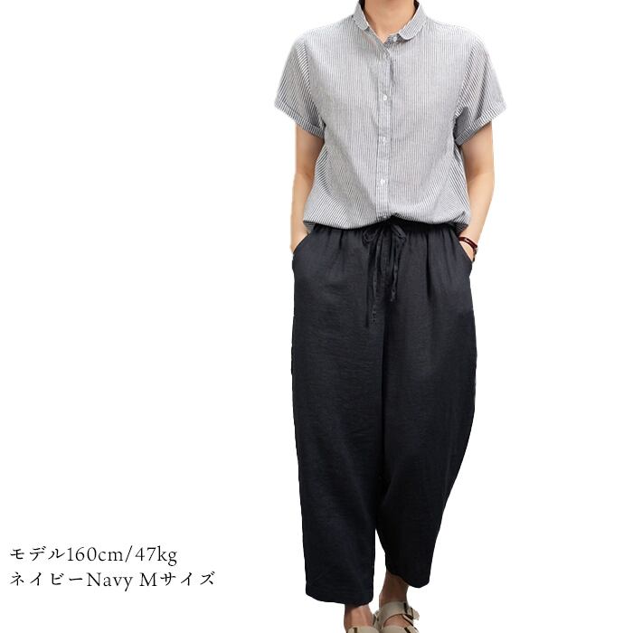 スイモク リネンパンツ リネン パンツ 長ズボン レディース ボトムス 麻 綿 大人 リラックスパンツ イージーパンツ ゆるパン ロングパンツ ストレートパンツ シンプル おしゃれ ウエストゴム 無地 春 夏 秋 M L 5685074【水沐良品】