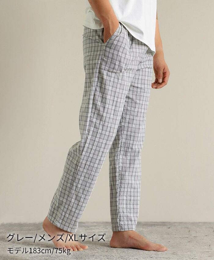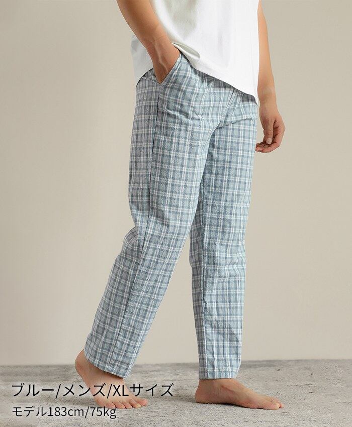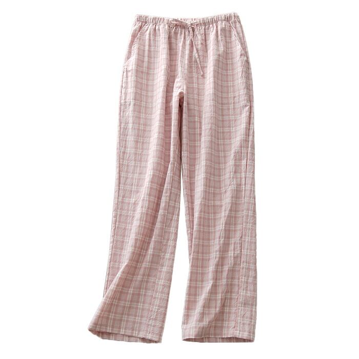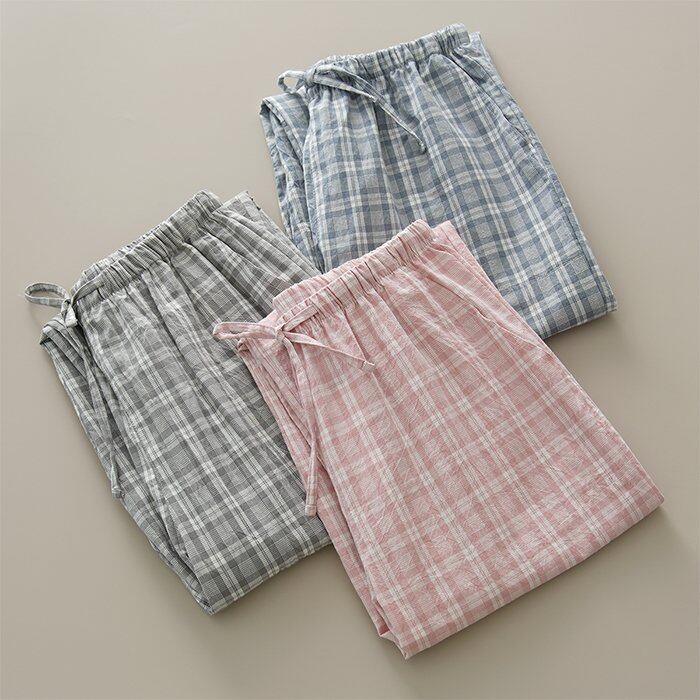 綿100% ペアルック パジャマ パンツ ルームウェア 男女兼用 快適 長パンツ メンズ レディース チェック柄 コットン 春 夏 秋 冬 長ズボン オールシーズン  シンプル コットン プレゼント お揃い ペアルック 新婚 5685241【水沐良品】