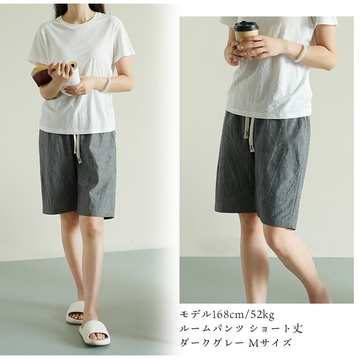 スイモク 綿100% ルームパンツ ショート丈 短パン サラサラ パジャマ ルームウェア メンズ レディース 夏 部屋着 ショートパンツ コットン シンプル 薄手 快適 肌触り良い 男女兼用 5686422【水沐良品】