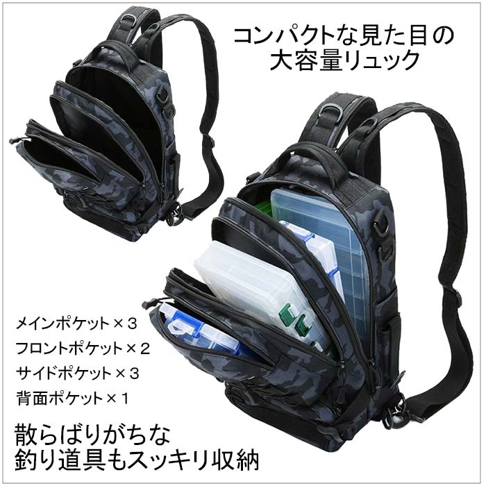 フィッシングリュック 釣りバッグ 釣りカバン 撥水 防水 大容量 多機能 ボディバッグ ショルダーバッグ バックパック アウトドア 山登り トレッキング G136