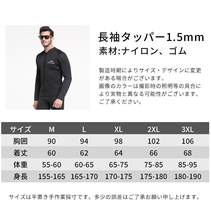 ウェットスーツ メンズ 長袖 タッパー ジャケット 1.5mm サーフィン ダイビング マリンスポーツ SUP 男性 WETSUIT 水遊び UVガード 夏 春 シンプル G248