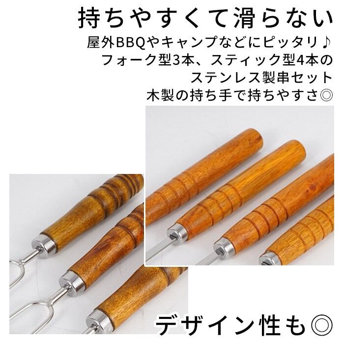 ステンレス製の串は持ち手が木製で