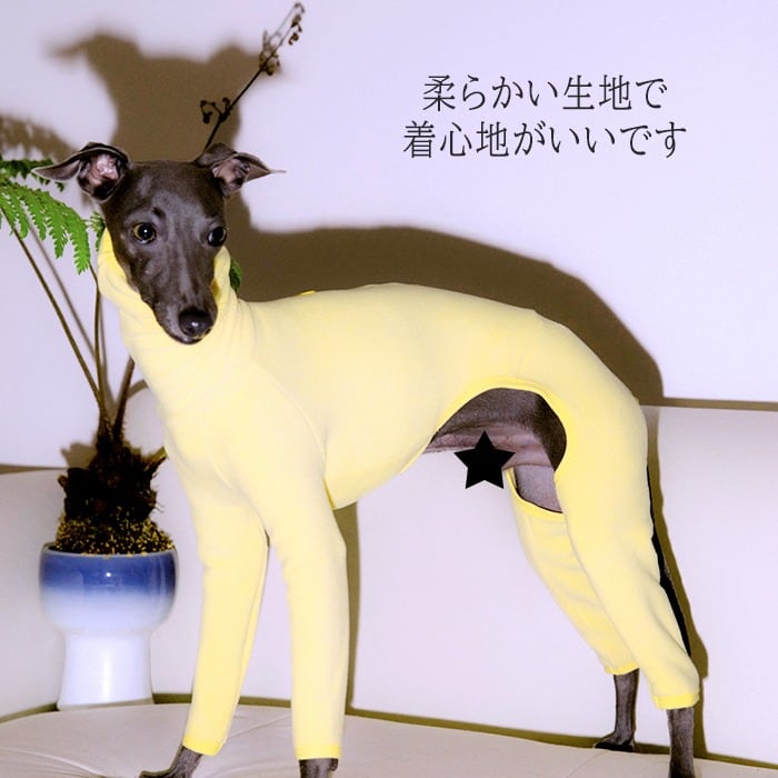 新作 蓄熱 保温 ミニピン イタリアングレーハウンド ロンパース ロングネック フリース素材 伸びがいい 部屋着 ペット ストレスフリー イエロー オフホワイト 綺麗カラー 服 イタグレ おしゃれ カッコイイ 犬服 暖かい 防寒 長袖 IG018OP