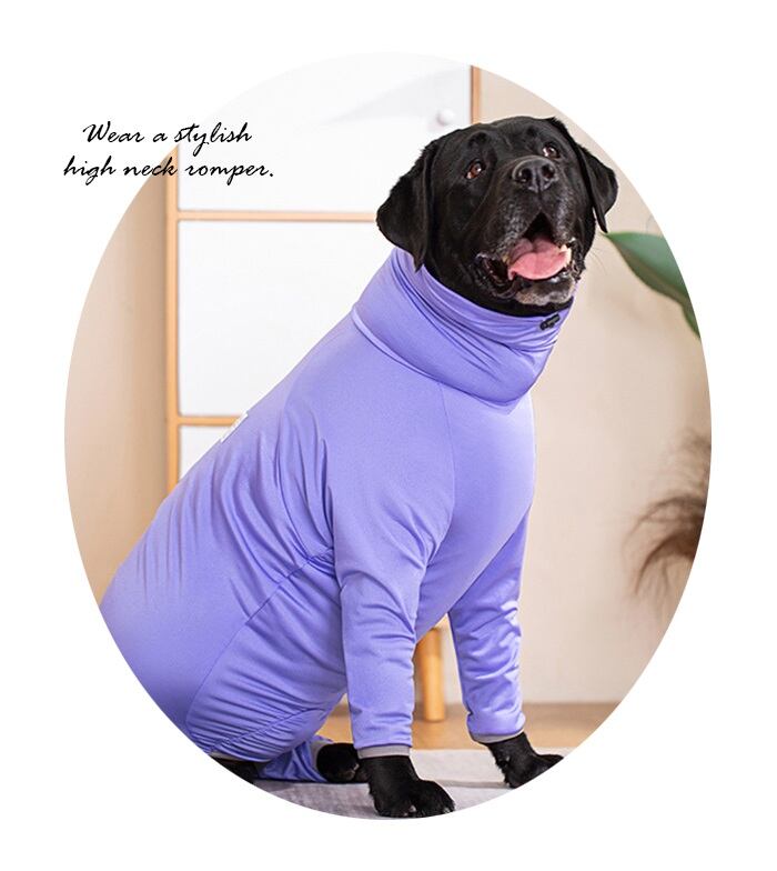 犬服 ハイネックロンパース 大型犬 中型犬 ラッシュガード 日除け 日焼け つなぎ カバーオール 長袖 術後服 皮膚保護 背中ファスナー 夏 春 秋 冬 オールシーズンドッグウェア ゴールデンレトリーバー ボーダーコリー 柴犬 ペット服 ペット わんこ用 KM814OP