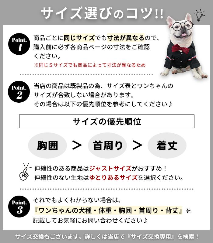 サイズは商品によって異なりますので、愛犬ちゃんの胸囲、背丈、首回りご確認の上ご購入を宜しくお願い致します