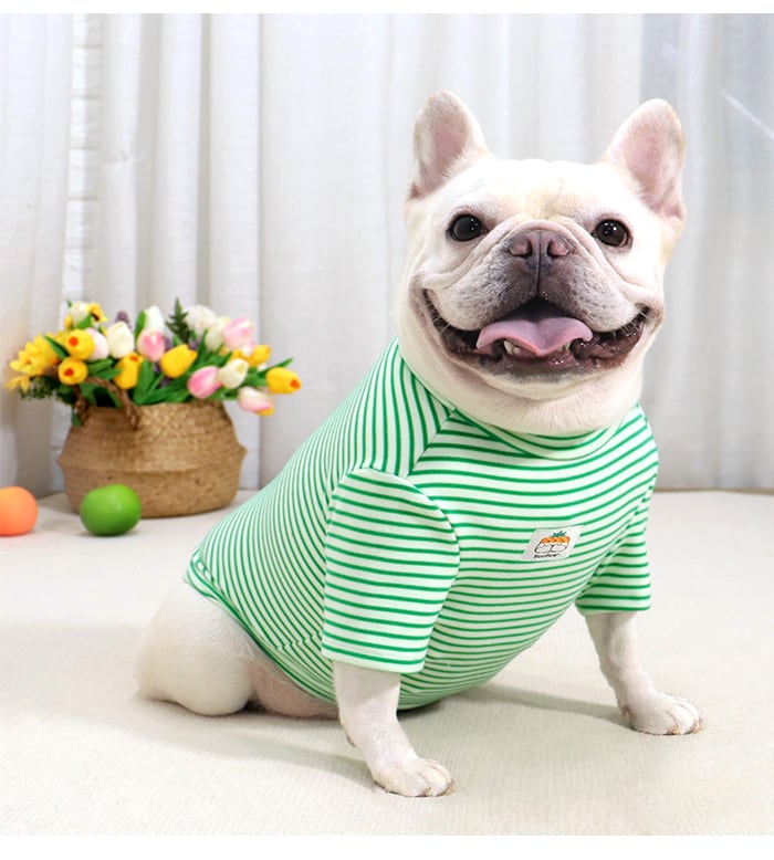 KM949TSふんわり 起毛素材 ボーダー Tシャツ 犬 犬服 モックネック 暖かい 柔らかい フレンチブルドッグ 服 秋 冬 中型犬 小型犬 部屋着 フレブル おしゃれ かわいい ドッグウェア ペットウェア パピー服 パピー 子犬 仔犬 KM949TS