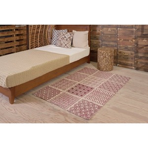 【メーカー直送、2営業日以内に発送】【6個セット】 東谷 ラグ W90×D130 ベージュ/ブラック/レッド TTR-145