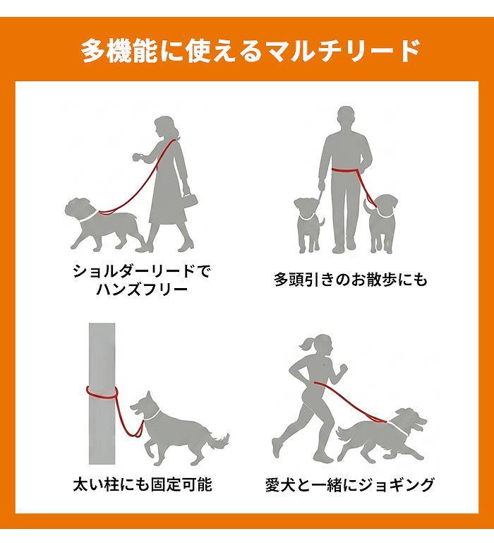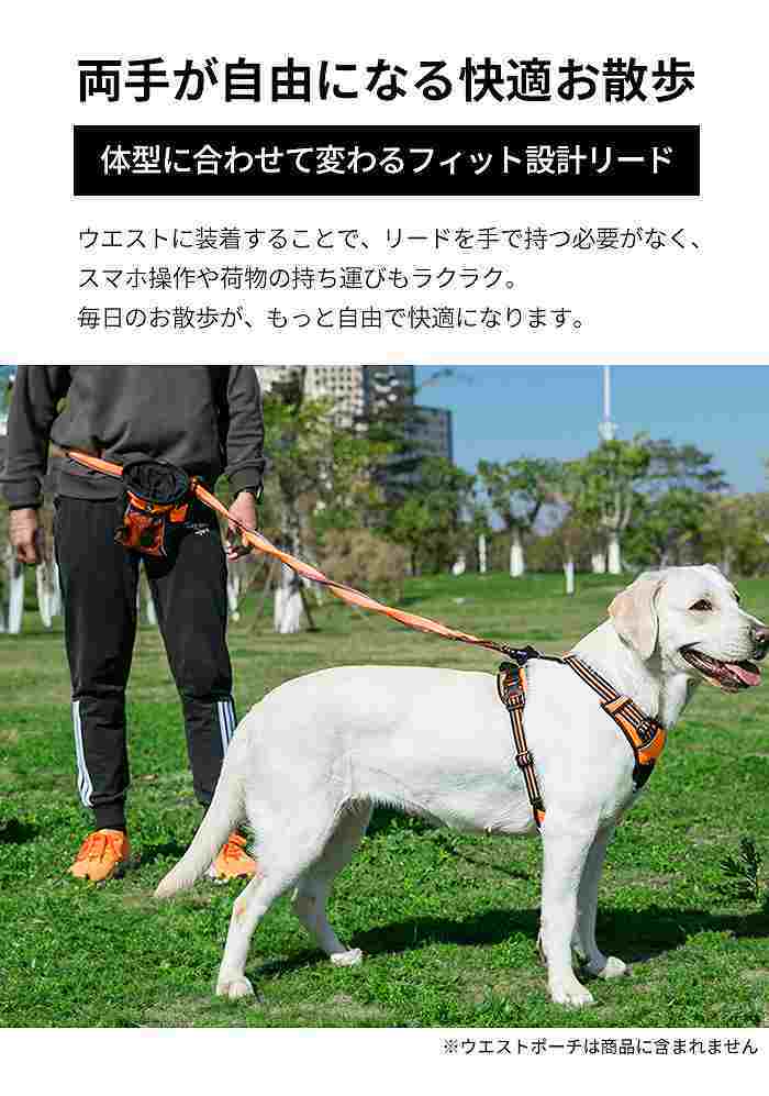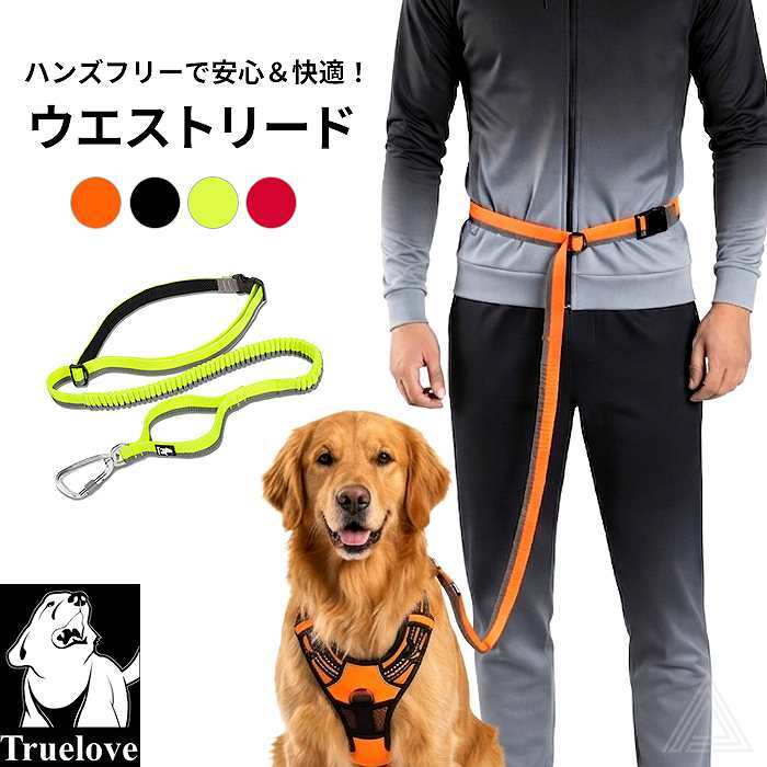 Truelove 犬 リード ウエストリード ショルダーリード マルチハンドル伸縮リード 腰巻き ハンズフリー ネジ式ロック 安全 耐久性 犬用 万能リード 中型犬 大型犬 丈夫 トレーニングリード ソフトハンドル 長さ調整可能 黒 赤 オレンジ グリーン ネオンカラー TLL2271