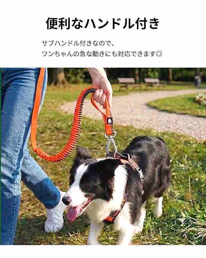 伸縮性のあるリードが愛犬の動きに合わせて伸び、
