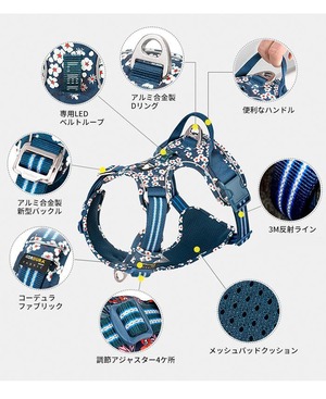 【Mサイズ】TLH5656リニューアル 犬 ハーネス 胴輪 コーデュラ素材 フローラルハーネス ブランド 和風柄 和柄 簡単着脱 快適 通気性 カラフル 花柄 猫 安全 反射ライン 丈夫 かわいい カラフル 夜間安全 定番 小型犬 中型犬 シニア犬 パピー犬 和柄 花柄